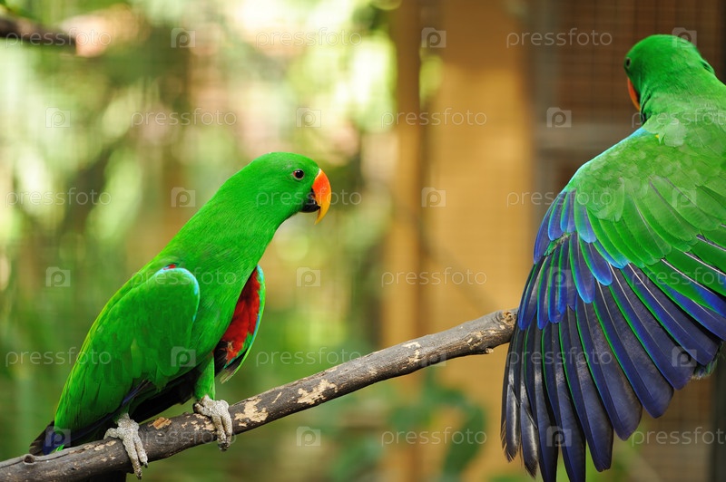 Пара зеленых попугаев