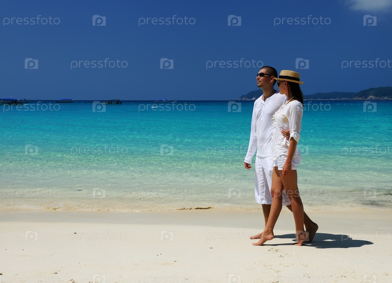 Пара в белом на пляже