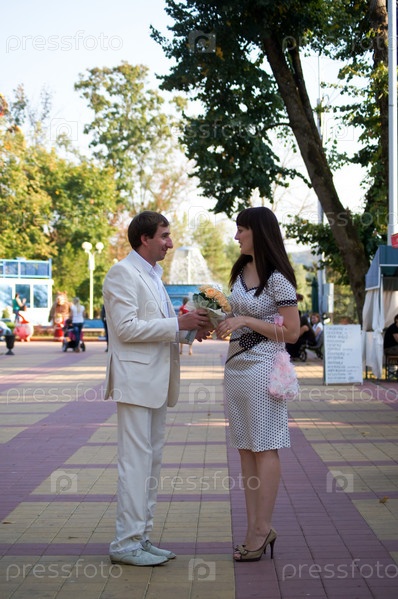 Счастливая молодая пара на прогулке