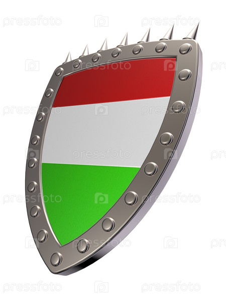 Металлический щит с венгерскими национальными цветами. 3d иллюстрация