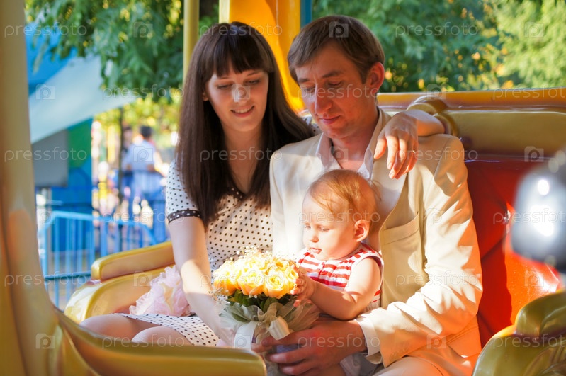 Счастливая семья на прогулке