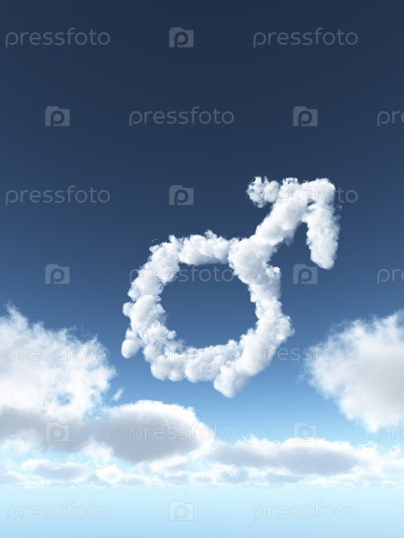 Облака в форме мужского символа. Трехмерная иллюстрация