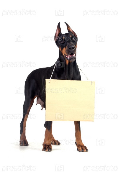 Собака доберман с пустым баннером
