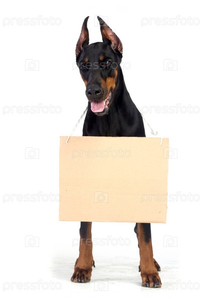 Собака доберман с пустым баннером