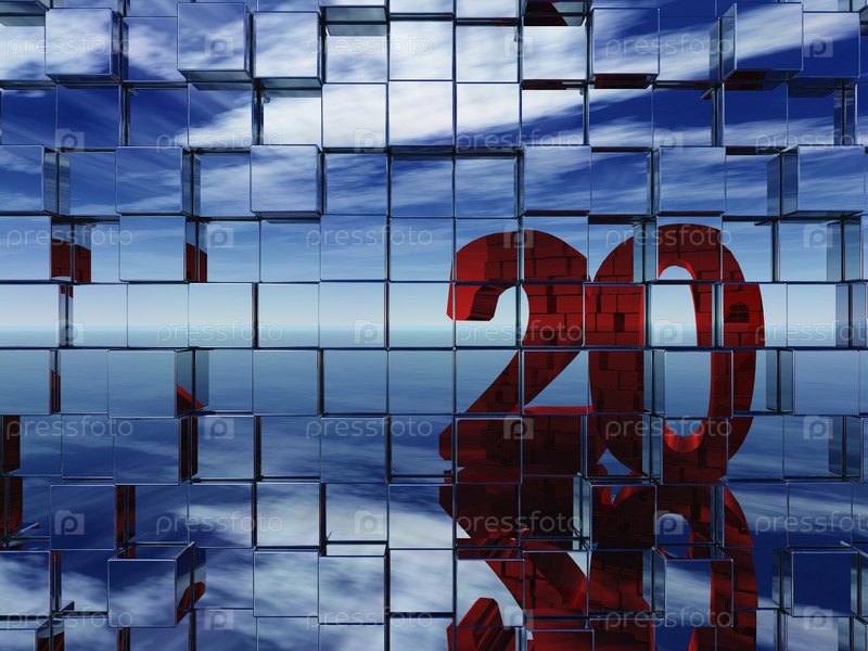 Стены из металлических кубиков отражают число двадцать - 3d иллюстрация