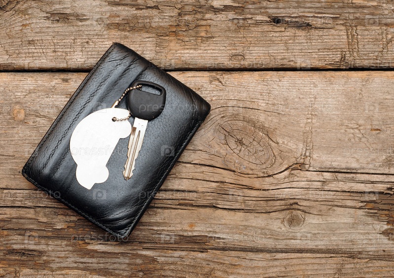 Автомобильные ключи и документы на темном деревянном фоне