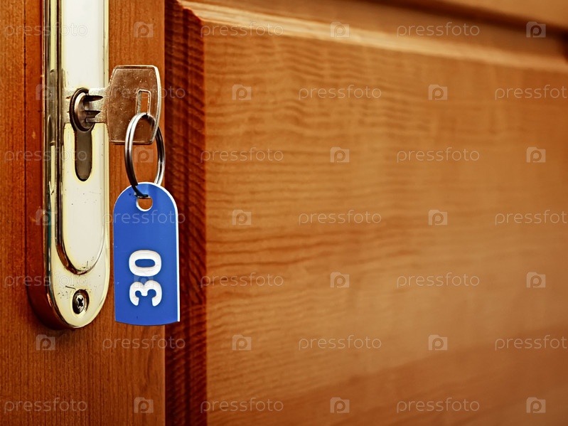 Ключ в замочной скважине с биркой