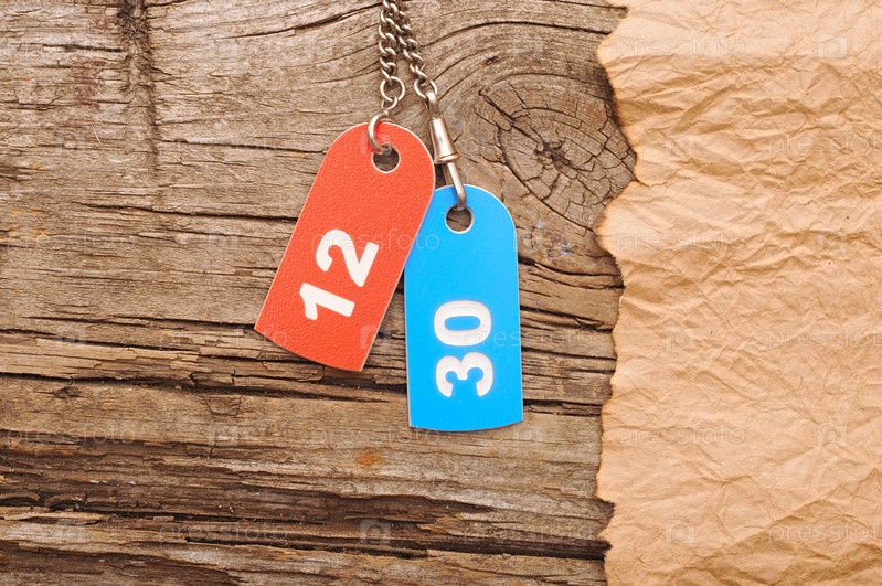 Две ярких бирки с числами на винтажном фоне