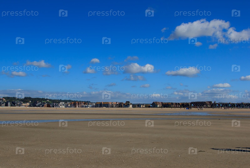 Вид на Довиль. Песчаный пляж. Берег Ла-Манша