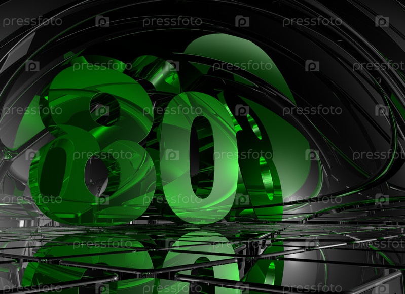 Число восемьдесят в абстрактном футуристическом пространстве - 3d иллюстрация