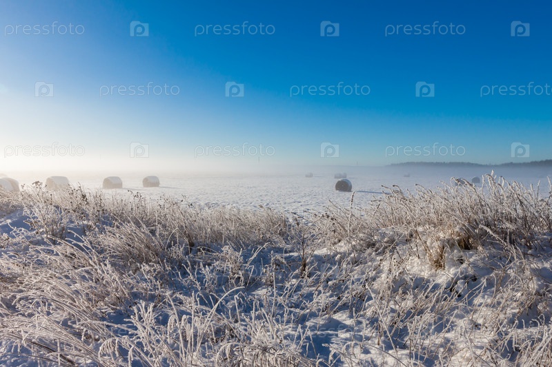 Заснеженная сухая трава