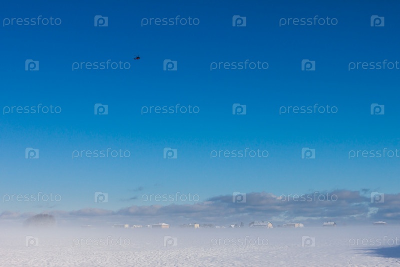 Зимний пейзаж с вертолетом