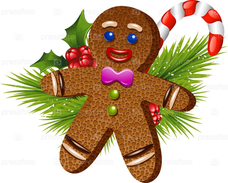 Пряничный человечек с рождественским декором на белом фоне