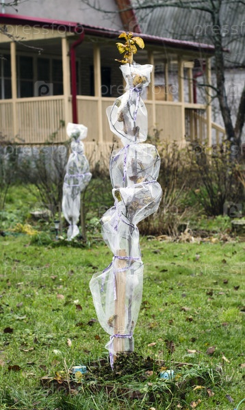 Завернутые для зимы яблони