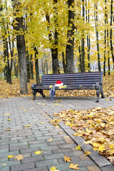 Шапка Деда Мороза и зонтик на скамейке