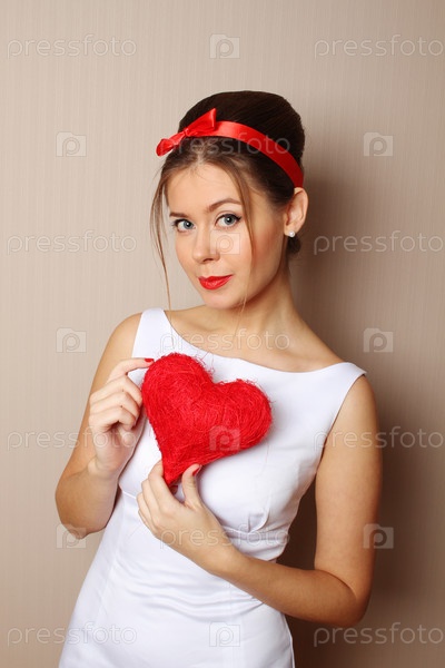 Красивая молодая женщина, держащая красное сердце
