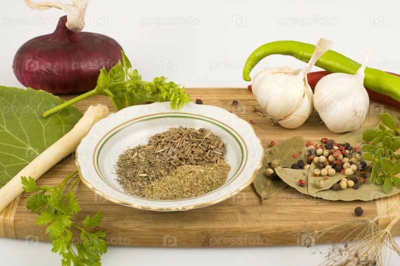 Различные специи на разделочной доске