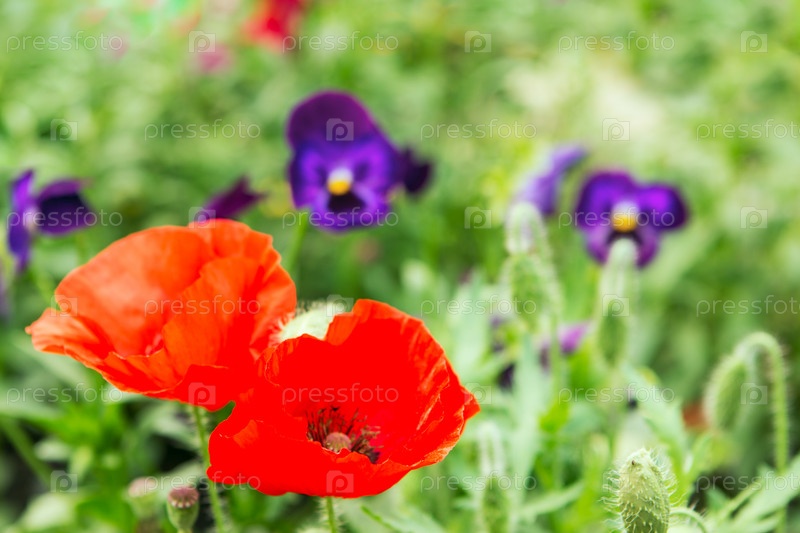 Яркие цветы в солнечном свете в летний день
