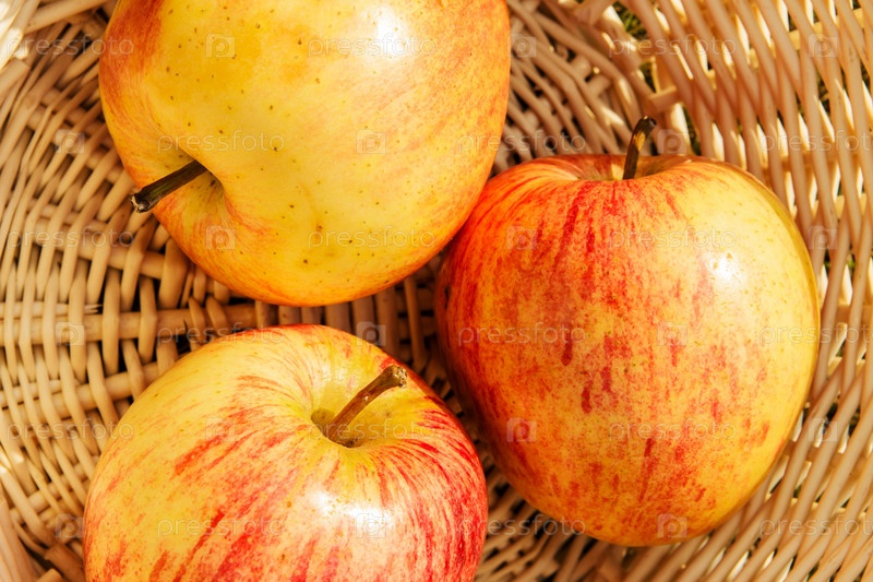 Три спелых яблока в корзине