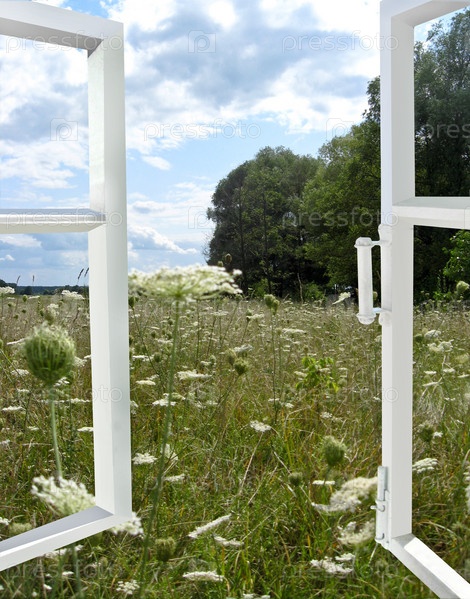 Открытое окно в поле летом