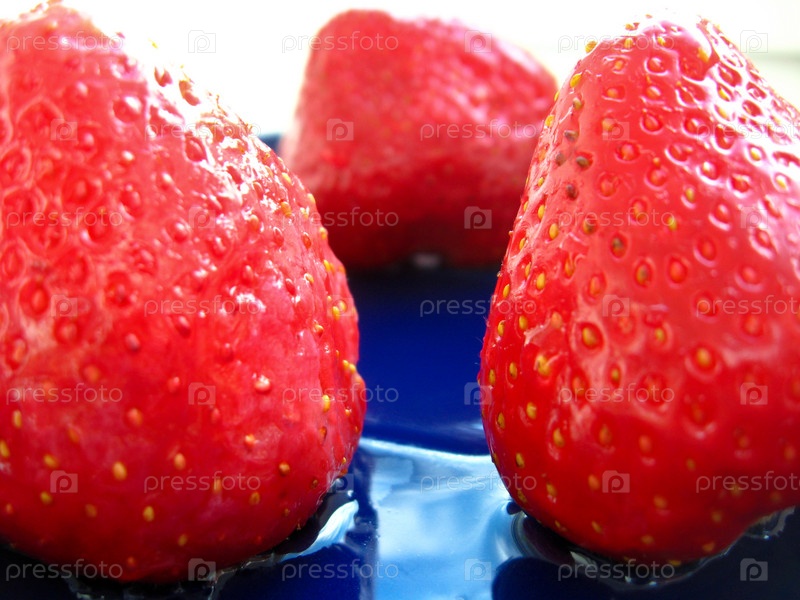 Ягоды клубники на синей тарелке