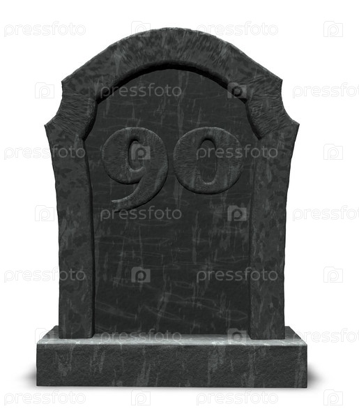 Надгробие с номером девяносто на белом фоне - 3d иллюстрация