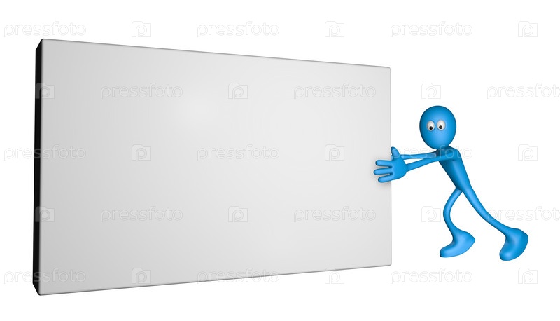 Синий парень толкает пустую коробку - иллюстрация 3D