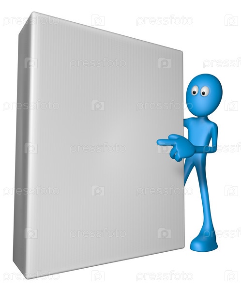 Синий парень толкает пустую коробку - иллюстрация 3D