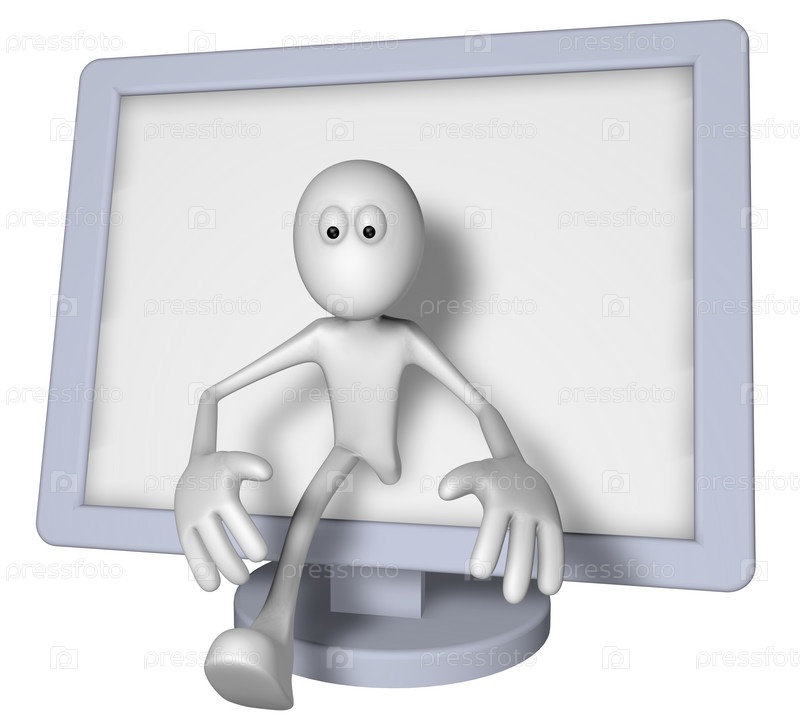 Белый парень и плоский монитор - 3D иллюстрация