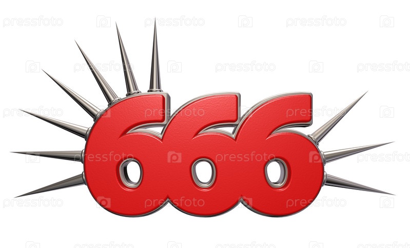Число 666 с шипами на белом фоне - 3d иллюстрация