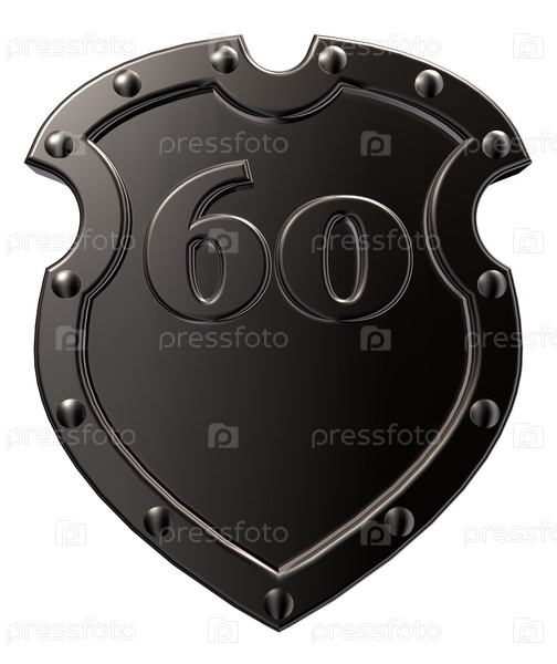Металлический щит с номером 60 на белом фоне - 3d иллюстрация