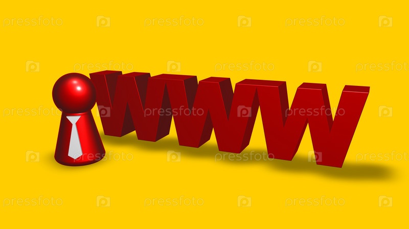 Маленький человек с галстуком и тегом www - 3d иллюстрация