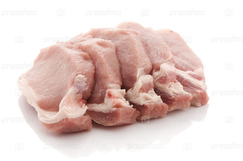 Свежий свиной карбонад ломтиками, изолированный на белом