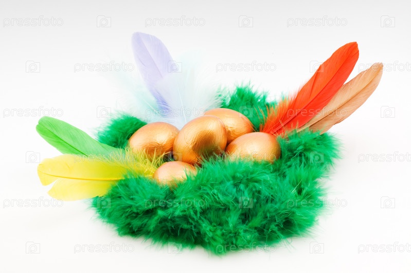 Пасхальная декоративная композиция с золотыми яйцами