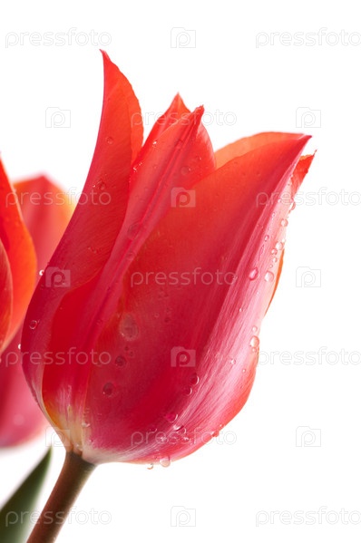 Букет красных тюльпанов с росой на белом
