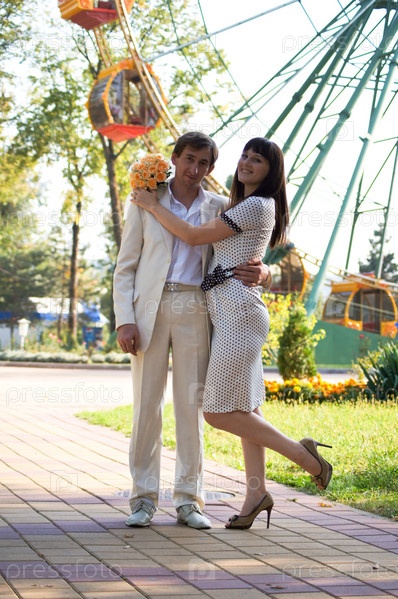 Счастливая молодая пара на прогулке