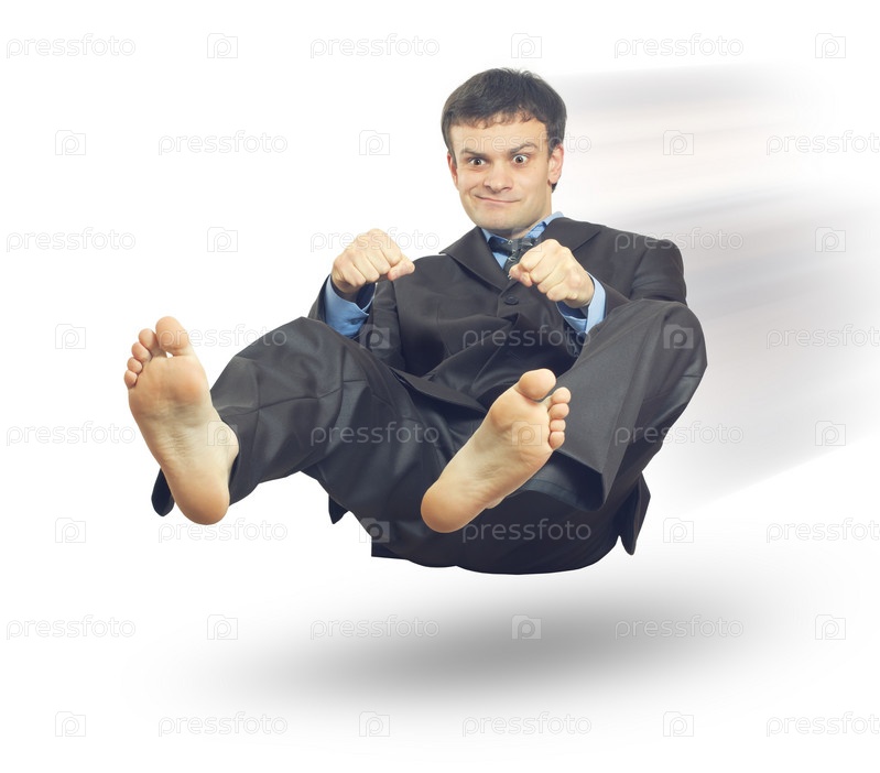 Бизнесмен имитирует вождения автомобиля