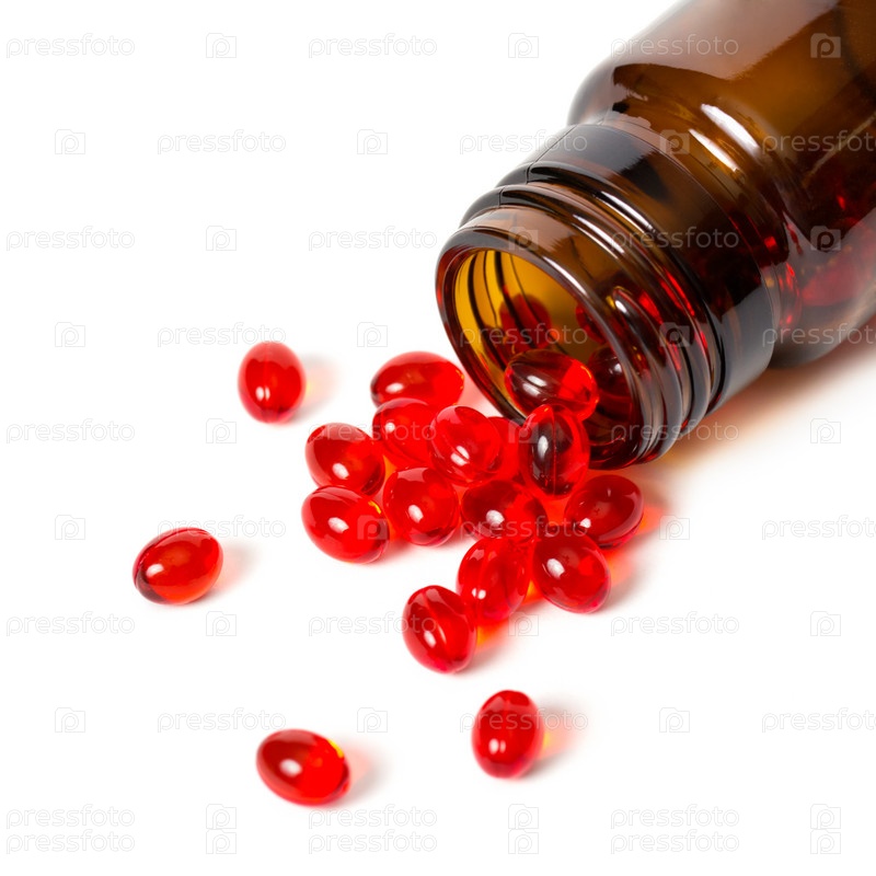 Таблетки и бутылка на белом фоне
