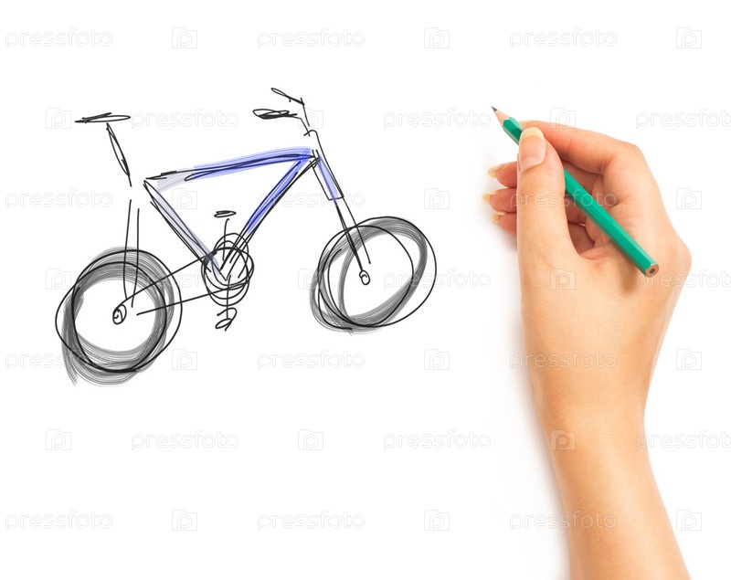 Женская рука рисует велосипед