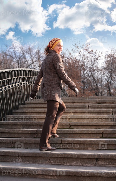 Девушка на каменной лестнице
