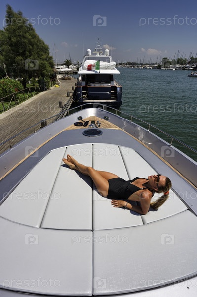 Италия, Фьюмичино (Рим), река Тибр, роскошная яхта Альфамарин 60, палуба