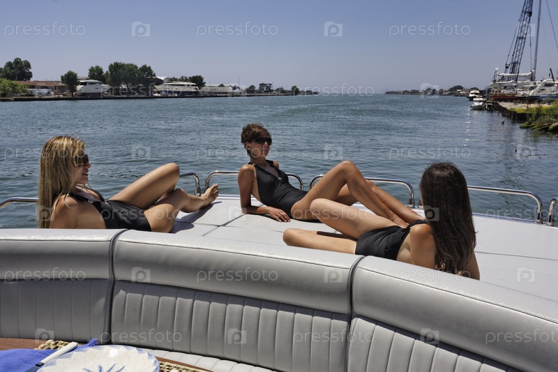 Италия, Фьюмичино (Рим), река Тибр, роскошная яхта Альфамарин 60, палуба