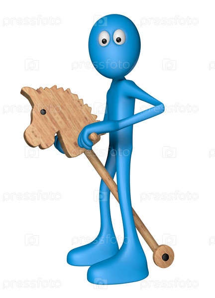 Синий парень едет на игрушечной лошади - 3d иллюстрация