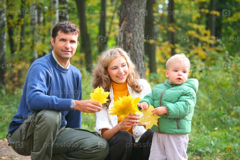 Родители с сыном в осеннем парке