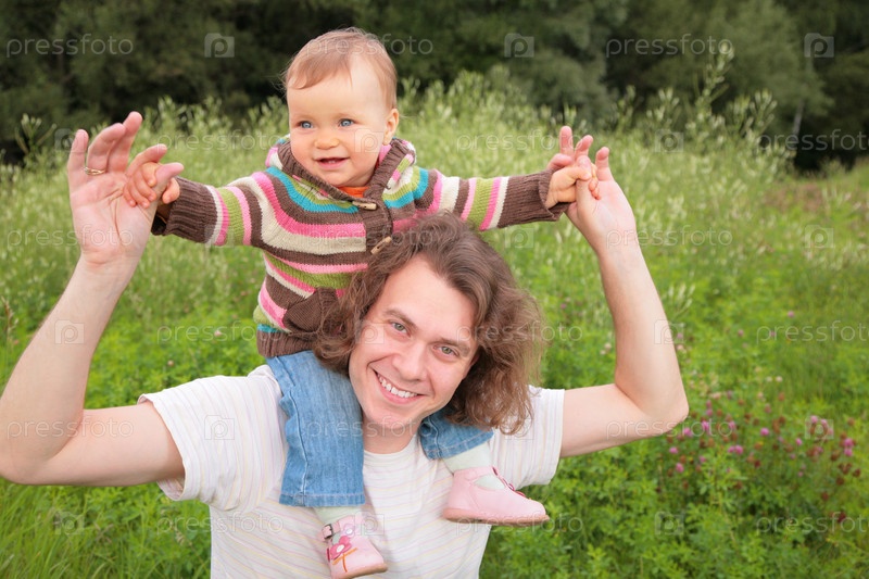 Сын сидит на плечах у папы