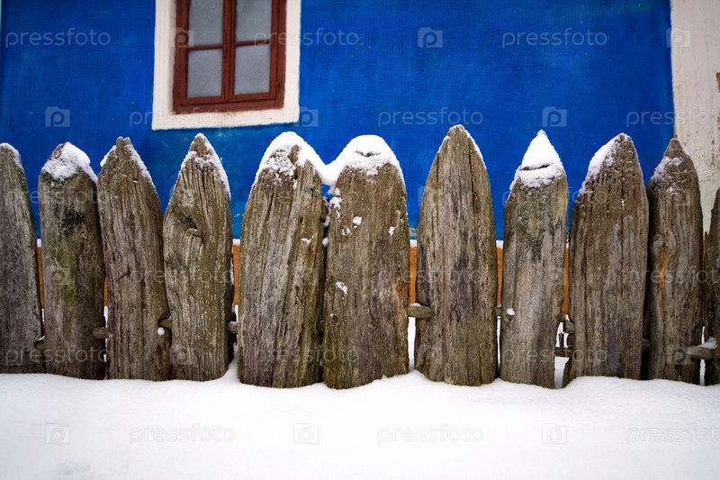 Деревянный забор покрытый снегом