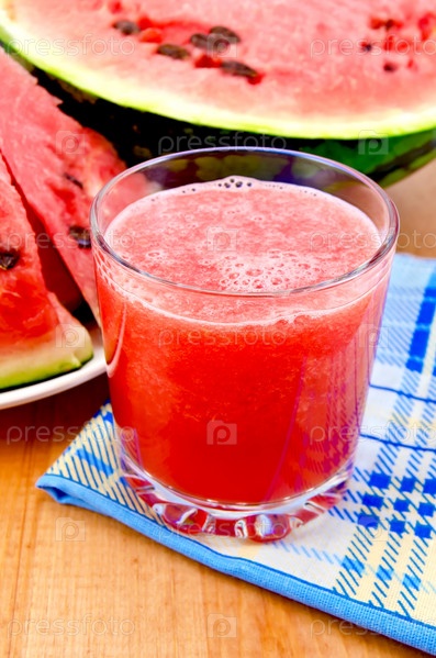 Сок арбузный на салфетке и доске