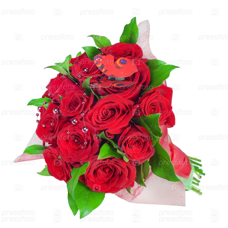 Красочный цветочный букет из красных роз, изолированный на белом фоне