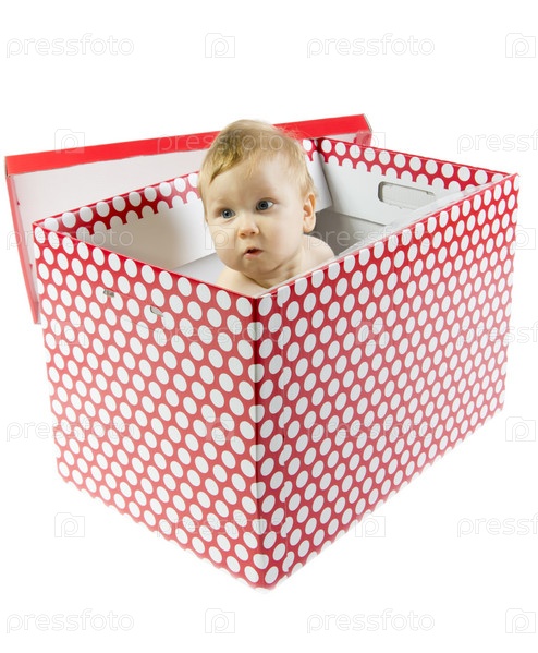 Голубоглазый ребенок в подарочной коробке