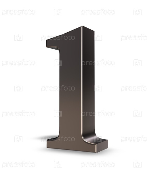 Металлическая цифра один на белом фоне. 3d иллюстрация